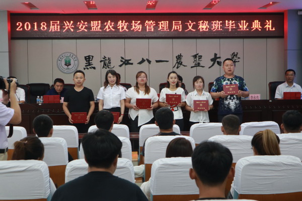 伊始,与会全员观看了学员两年来学习及生活的记录视频,随后毕业典礼在雄壮的国歌声中拉开序幕。继续教育经理赵旺宣读了校发关于所有学员准予毕业的决定文件;兴安盟农牧场管理局组织部长张学海宣读了校发关于表彰优秀班级干部的通知;继续教育副经理孙强宣读了校发关于表彰优秀学员的通知。随后主席台就坐领导为所有学员颁发了毕业证书,为所有受表彰优秀班级干部和优秀学员颁发了荣誉证书并合影留念。