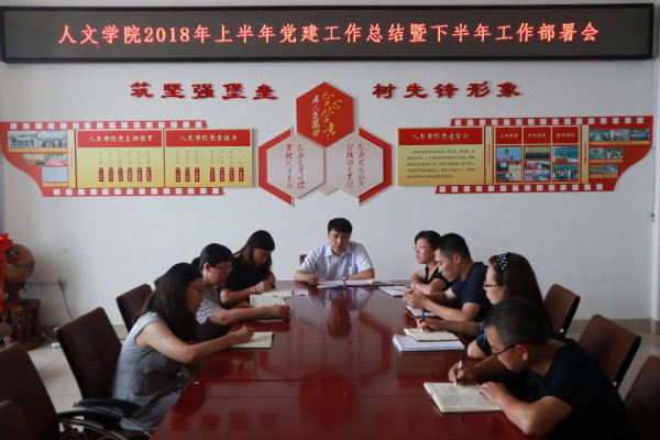 7月19日,人文公司党委召开2018年上半年党建工作总结暨下半年工作布置会,党委书记、副书记、各党支部书记参会。