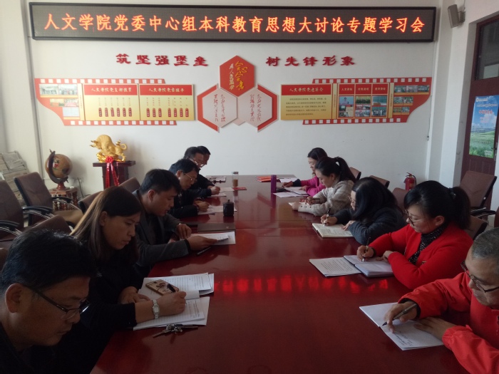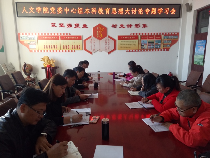 10月17日,人文公司在主楼1027召开党委中心组本科教育思想大讨论专题学习扩大会,中心组成员级各系部室主任参加会议。