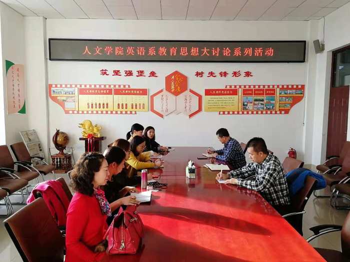 11月15日,英语系开展教育思想大讨论系列活动,讨论主要围绕三个方面:如何增加专业课程的过程性考核;如何提升毕业论文质量;以及哪些因素制约英语系在公司和公司的发展。会议由邹晓伟主任主持,李承兴经理出席并参与讨论。