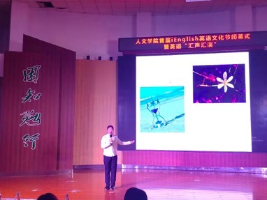 12月3日由U8国际官网主办,U8国际官网英语系、分团委、英语社团承办的首届iEnglish英语文化节闭幕式暨英语“汇声汇演”圆满落下帷幕,出席此次活动的嘉宾有人文公司党委书记康忠伟、副经理李承兴、大学英语教学部主任赵薇、副主任陈颖、英语系主任邹晓伟、辅导员李传峰以及全体英语教师。