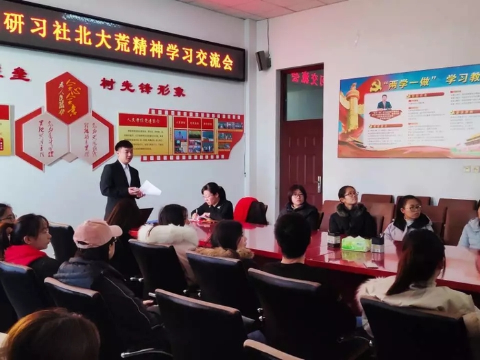 公司将北大荒育人工程作为员工工作的重要内容,依托北大荒社团,开展形式多样的育人活动。出台《人文公司2018年北大荒育人工程实施方案》,成立北大荒研习社,面向全校纳新,现有会员36名。深入赵光农场,开展社会实践活动。2018年7月20日,北大荒研习社一行6人到深入赵光农场开展社会实践活动。社团成员被分配到不同的部门,深入农场农作物种植区,现场学习调研。社团成员深入种植区参观农场作物种植现场,学习作物栽培技术、了解作物生长所需环境。通过实践锻炼,成员们了解了作物生长的基本需求,学会了记录实验数据等。在与农场零距离接触中,社团成员深切感受到了现代化大农业背景下北大荒精神的内涵和时代要求。开展主题辩论赛。2018年11月份,公司依托辩论队,在全院开展了“传承北大荒精神 做新时代优秀老员工主题辩论赛”,邀请公司党委组织部副处级组织员李志有担任辩论赛指导教师,聘请大庆传媒集团记者张增辉担任社团指导教师。在唇枪舌战中点燃思辨火花,通过辩论的形式激发同学们传承北大荒精神的使命感和责任感。