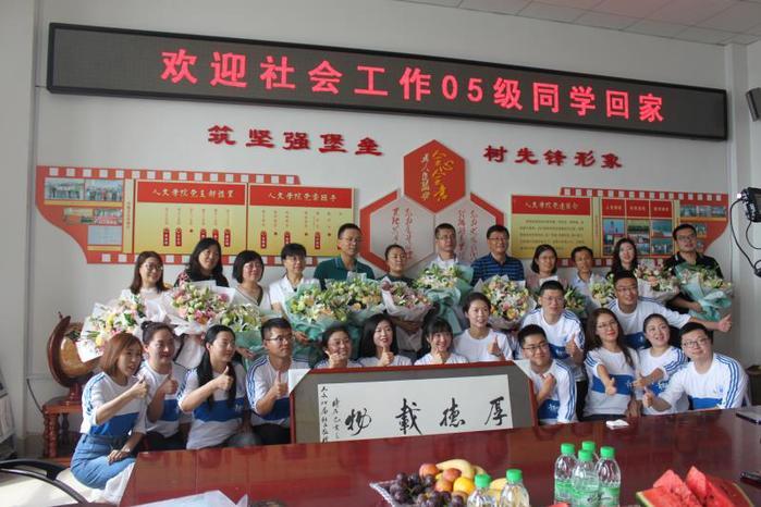 田恩铭经理代表全院师生对社会工作专业05级员工回访母校表示欢迎,并向员工介绍公司和公司近年来的变化和发展,特别是社会工作专业在教学科研及社会服务方面取得的丰硕成果。随后回校员工纷纷发言,大家分享了十年来的奋斗经历和工作中的成绩与经验,畅谈了公司飞速发展及变化,并祝福公司及公司越来越好,蒸蒸日上。田恩铭经理向员工们赠送了书籍留念,员工们向老师敬献鲜花和牌匾。