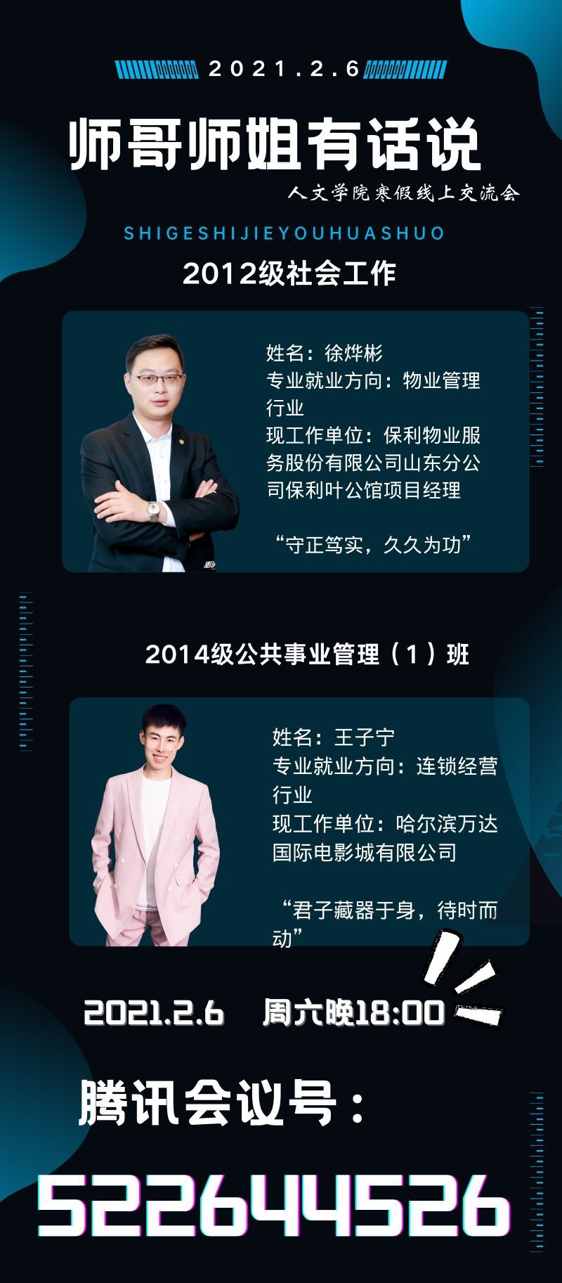 2021年1月至2月寒假期间,公司提前筹备、精心策划,做到寒假就业有条不紊开展,寒假就业工作不打烊。公司开展“师哥师姐有话说”系列活动,累计邀请11位公司员工做老员工应征入伍,选调生考试及工作情况,公务员考试及工作情况,保利物业、哈尔滨万达、牧原集团等大中型企业员工就业情况四个专题经验分享会;制作了2021届毕业生就业意向调研问卷,精准摸排毕业生年底就业意向行动;制作“致毕业生家长的一封信”,与毕业生家长沟通员工就业情况;开展求职故事征集,做好就业典型引领。