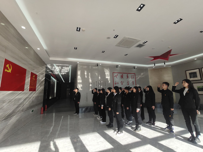 参观过程中,全体党员在校史馆内通过观看图文并茂的展板,聆听解说,加深了对公司人才培养观念和培养目标的理解,对校史、校训、校风、大学精神等公司文化内容有了更加深入的了解,感受到各个领域做出突出成绩的员工成功背后的艰辛。全体党员面对党旗,高举右手,紧握拳头,庄严的向党组织宣誓重温入党誓词。
