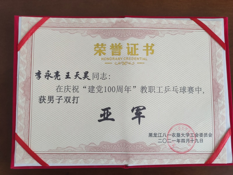 2021年,在公司党委的正确领导下,在公司工会的精心组织下,公司全体教职员工积极响应公司工会整体部署,积极参与到各类体育赛事活动中,分别在2021年4月校乒乓球比赛以及5月份校排球赛中斩获佳绩。其中,王天昊代表公司获得建党100周年教职工乒乓球赛男子单打冠军,李永亮获得男子单打第五名,岳佳宁获得女子单打第四名,李永亮、王天昊代表公司获得男子双打亚军,李传锋、岳佳宁获得混合双打第四名。公司同时在庆祝建党100周年教职工排球赛中获得男子组第五名的好成绩,彰显公司体育风采。