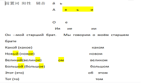 思考是解决问题的主要方法,也是提取重点知识的最佳手段,二外俄语初级阶段主要任务是掌握语法知识及灵活运用,特别是很多特殊形式的变化,如物主代词单数第六格中较为特殊,需要单独记忆,但特殊中也存在某些规律,如: