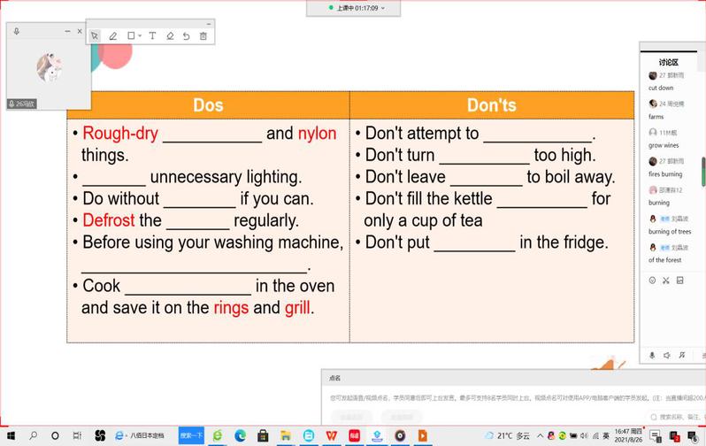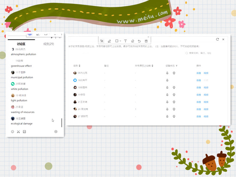 对于课堂进行中观看屏幕共享的人数可以根据屏幕右侧的提示进行监督,如果人数少于班级人数,可以通过点名检测大家的网络连接情况。
