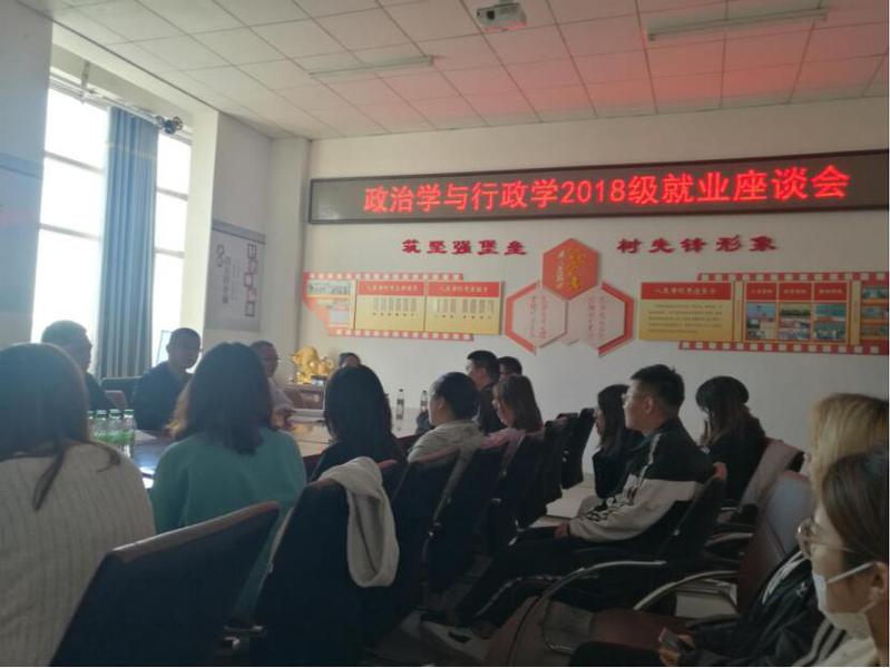2021年9月29日下午3:30,人文公司在主楼1027会议室召开政治学与行政学2018级就业工作座谈会。人文公司经理田恩铭教授、分团委书记张家奇老师、政治学与行政学系主任付金柱老师、政治学与行政学2018级班主任王秀芬老师与政治学与行政学2018级同学参与了此次座谈。