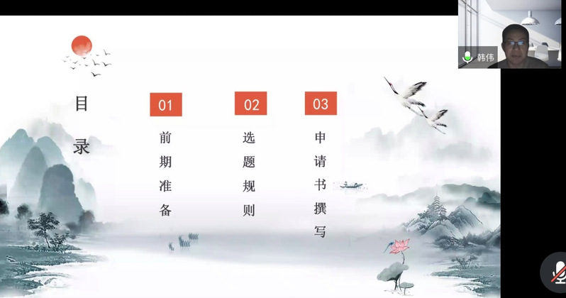 建院二十周年之际,12月16日晚,人文公司特邀请黑龙江大学文公司韩伟教授于腾讯会议开展线上“关于国家社科项目申报的体会”专题讲座。本次讲座由经理田恩铭教授主持,人文公司及兄弟公司教师60余人参加聆听。