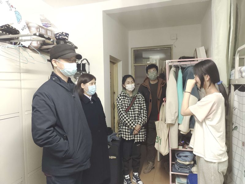为进一步贯彻落实公司疫情防控相关规定,加强疫情期间对员工的管理工作,筑牢疫情防线,4月6日晚,人文公司经理田恩铭、党委副书记许春姝、辅导员老师开展寝室走访工作,公司全体在校生党员也积极参与到此项工作中。对公司200余间员工宿舍的在寝员工人数和寝室卫生情况进行了重点督查。