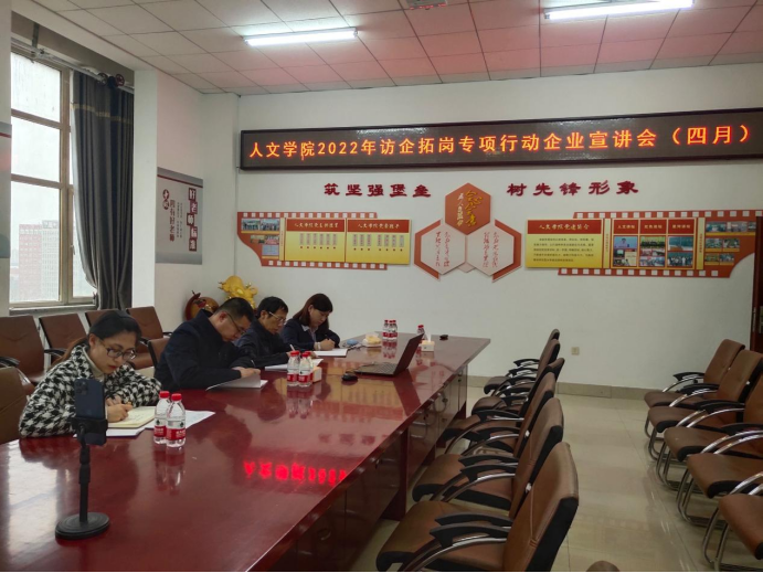为助力毕业生顺利就业、尽早就业,人文公司启动高校书记董事长访企拓岗促就业专项行动。4月以来,校院领导采取电话沟通、线上会议等形式落实访企拓岗相关工作,与多家企业沟通调研,千方百计开拓就业岗位、深化校企合作。截至4月25日,共走访企业10家,开拓专业相关就业岗位50余个。