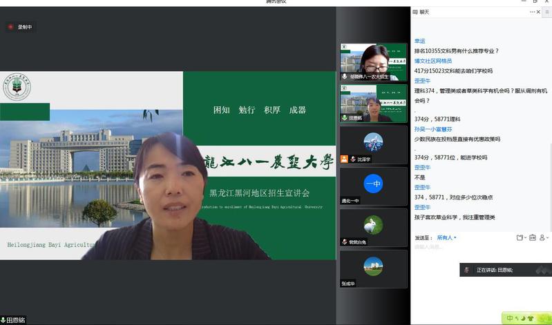 第二部分由辅导员周丹与参加会议的各个公司的师生进行了线上互动,在线解答了招生专业、新高考政策、志愿填报等相关问题。