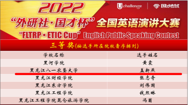 近日,2022“外研社·国才杯”全国英语演讲、写作和阅读大赛(黑龙江赛区决赛)顺利落下帷幕。