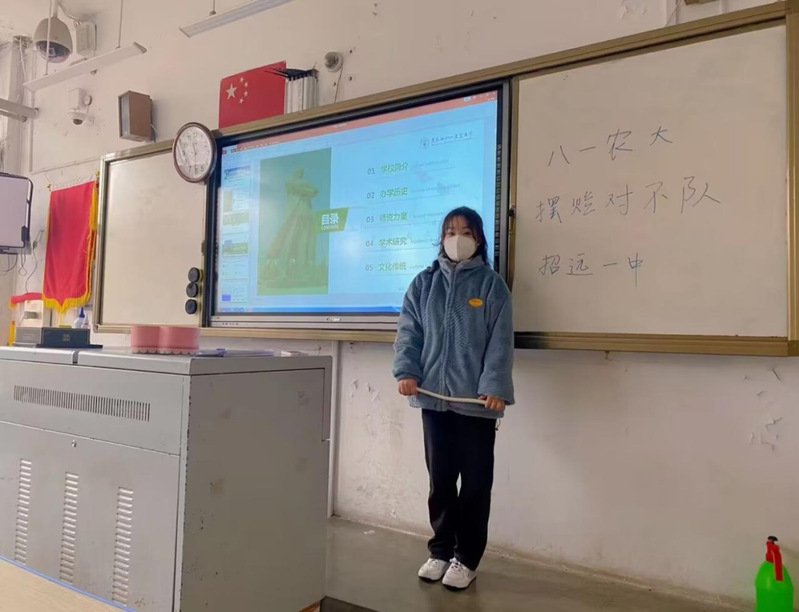 大家以“圆梦八一农大”为主题,通过线上线下相结合的方式,讲述农大故事、展现农大特色、宣扬农大精神、传播农大正能量,开展多样化宣讲活动。通过实践活动,进一步宣传农大,鼓励莘莘高中学子积极报考八一农大。在宣讲会开始之前,小组成员进行线上收集相关大学的问题,并与员工们进行深入的沟通,提前了解员工们感兴趣的话题。活动前期团队成员首先做好ppt,以及准备好公司相关宣传材料、宣传手册等,为返回母校行活动做好提前准备。充分的准备才是良好表现的基石。