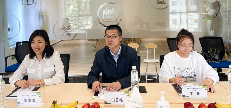 会上,田恩铭经理及优创业务总监袁晓青分别介绍了公司及企业发展情况及相关部门基本情况,公司毕业生程成(现任优创业务副经理)分享了她在公司和企业的成长发展经历,并感谢母校的培养和公司的认可。随后,参会人员就双方合作开展座谈,田经理表示人文公司秉承着开放包容的态度,一直与包括优创数据等诸多企业保持密切合作,努力为员工就业创造机会和条件;优创人力资源总监袁晓青和业务总监唐敏对公司员工的工作表现予以肯定,并欢迎更多的优秀员工加入;副经理邹晓伟就员工实习待遇与公司代表进行沟通,校企双方就员工发展和合作细节展开讨论。会议最后,双方签署校企合作协议。会后,招聘品牌经理姜艳带领田恩铭经理等人参观了优创数据办公室,了解工作环境及员工宿舍情况。