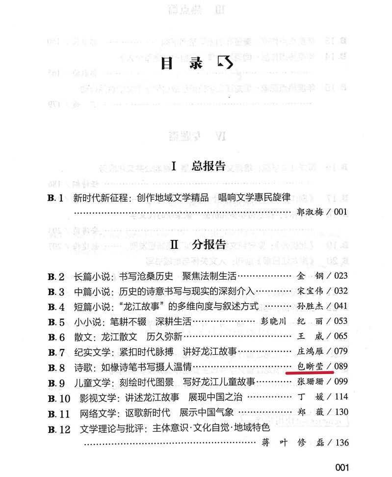 近期,公司汉语言文学专业包晰莹老师参与《黑龙江文学发展报告(2023)》(社会科学文献出版社,2023年9月)撰写,发表文章《诗歌:如椽诗笔书写摄人温情》。该书为《黑龙江蓝皮书·文学》系列第五册,皮书系列为“十四五”时期国家重点出版物出版专项规划项目成果,自2018年出版以来,始终瞩目黑龙江地域文学特色,所收录文章涵盖小说、散文、诗歌、儿童文学、影视文学、网络文学等多个领域,融地域之思考于文学之见解,以实际行动丰盈黑龙江文学创作的资源宝库。