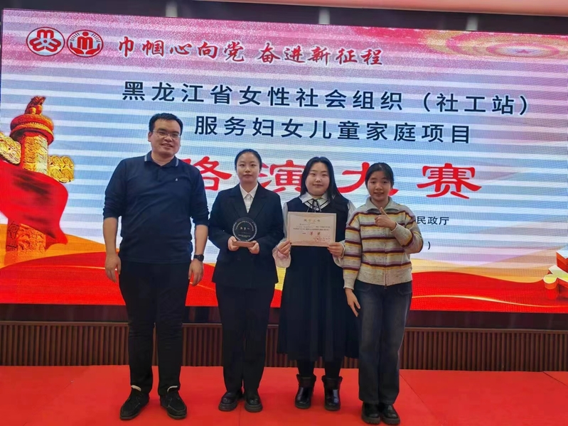 12月13日,由黑龙江省民政厅、黑龙江省妇联联合举办,黑龙江省妇女儿童发展中心(省女性社会组织服务中心)承办的黑龙江省女性社会组织(社工站)服务妇女儿童家庭项目路演大赛在哈尔滨举行。U8国际官网社会工作专业员工黄佳宁、黄显雅、李心语报送的《“童心圆”县域风险儿童守护计划》项目在本次比赛中荣获一等奖。
