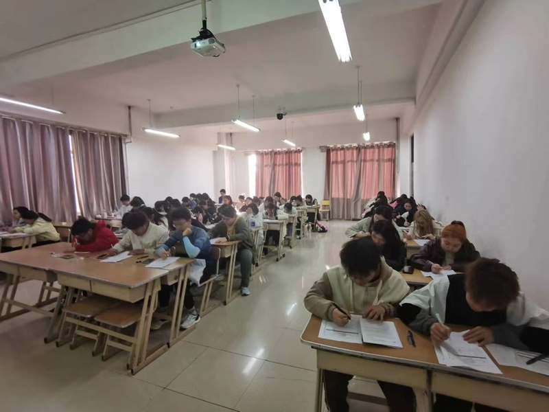 英语系教师精心安排试卷复印、听力音频调试、考场安排等考务工作,专四模考严格遵循全国英语专业四级考试大纲标准,限时130分钟,开考前监考教师严肃考风考纪。考试过程中,考生们认真审题,严谨作答,考场井然有序。