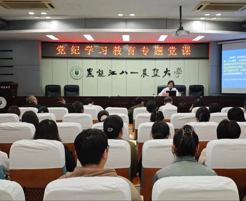 按照公司党委下发的《关于在全校开展党纪学习教育的实施方案》要求,5月8日,公司党委书记刘佳丽在主楼1043讲授党纪学习教育专题党课。公司全体教工党员、员工党员参会,深入学习修订后的《中国共产党纪律处分条例》,切实提高全院师生党性修养,增强纪律意识。