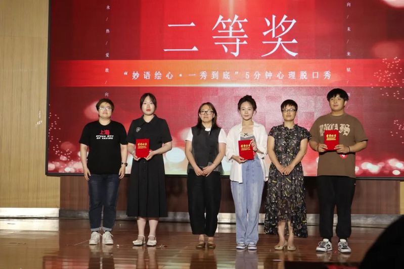 6月18日,在学校第二十一届员工心理健康宣传月活动之第一届5分钟心理脱口秀大赛中,公司2022级汉语言文学专业阚文博荣获一等奖,2022级汉语言文学专业姚雨岑、2023级公共事业管理专业徐佳慧荣获二等奖。