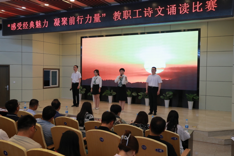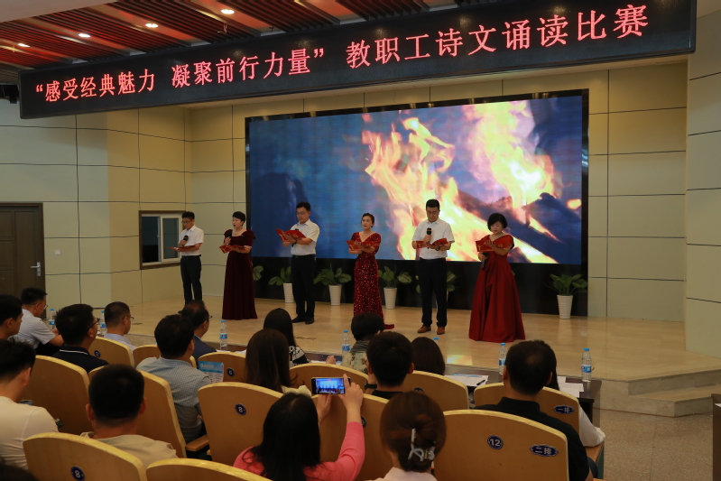 各单位在赛前都做了精心准备,比赛中,选手们感情充沛,声音时而高亢洪亮,时而舒缓轻柔,感情表达得淋漓尽致,博得台下阵阵掌声,整场比赛气氛轻松融洽,精彩纷呈。比赛作品内容广泛,既有赞美祖国大好河山的篇章,也有抒发个人情感、表达对教育事业热爱的作品,更有原创作品展现了教职工们的文学才华和创作热情。经过紧张激烈的角逐,食品公司、理公司、U8国际官网夺得本次比赛一等奖。