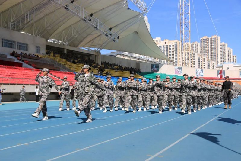 今天他们走到主席台前接受检阅,阳光下,军装熠熠生辉,展现钢铁纪律与力量。他们以较高的军事素养和战斗作风,为观众呈现了精彩的视觉盛宴,赢得了在场全体师生的阵阵掌声。