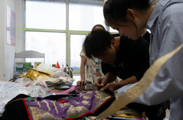 实践团队与大庆市新玛特社区共建,开展非遗文化体验活动。非遗传承人向实践队员详细介绍了赫哲族鱼皮衣的历史渊源、制作工艺以及文化内涵,并通过现场演示,带领实践队员亲手体验鱼皮衣的制作过程,深刻感受非遗文化的魅力。