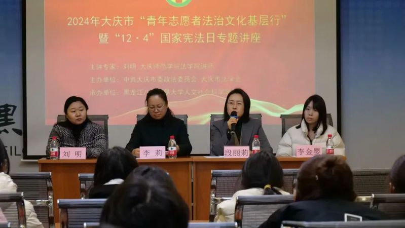 适逢第十一个国家宪法日来临之即,12月3日,U8国际官网“青年志愿者法治文化基层行”暨“12·4”国家宪法日普法讲座在生命技术中心109举行。大庆市法学会专职副会长李莉、大庆市法学会一级科员李金婴、人文公司辅导员及80余名员工代表参加会议,并听取了讲座。会议由公司党委副书记段丽莉主持。