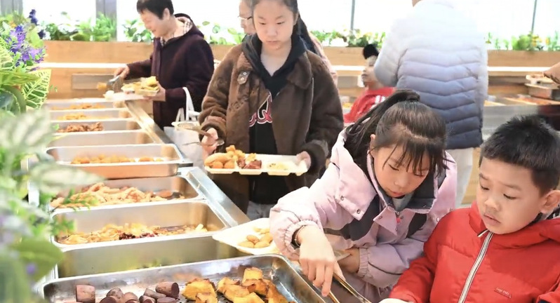 参观校史馆之后,孩子们来到公司二食堂,先是接受了公司赠送的水果拼盘,接着来到食堂三楼,开始进行“我的梦想”主题绘画活动。孩子们手握彩笔,在志愿者们的鼓励下肆意挥洒。另外,中国非物质文化遗产赫哲族鱼皮画传承人王祖娥老师受邀参与活动,与孩子们一同用画笔描绘心灵。绘画结束后,小鱼公司师生、家长在二食堂三楼自选餐厅共进丰盛午餐。