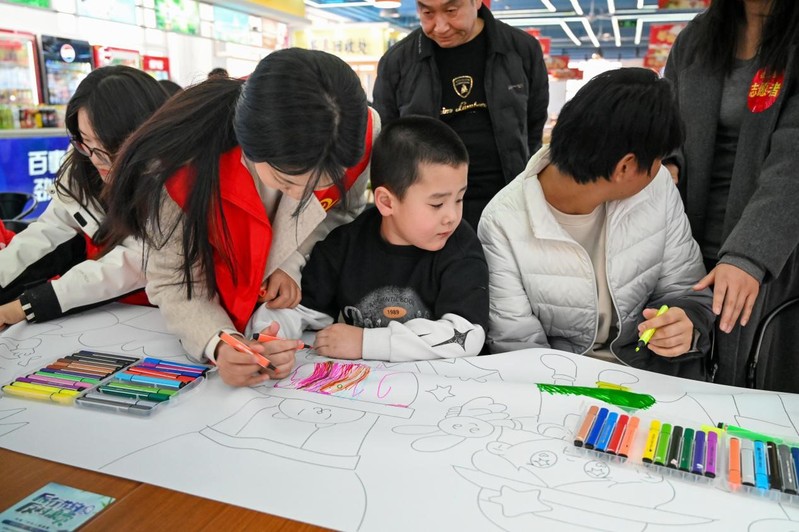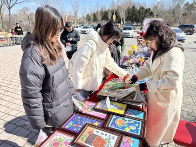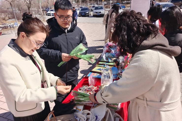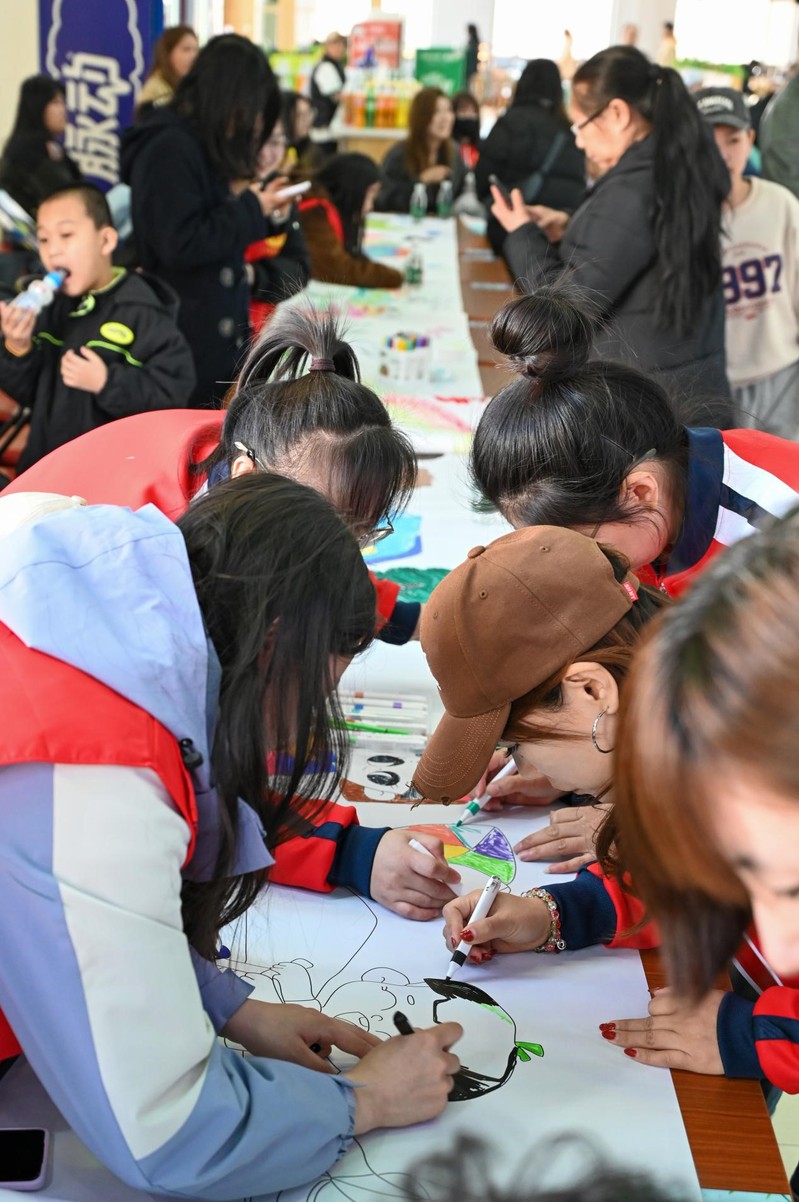 共绘百米画卷活动同时,绘画公司二食堂门口的爱心小集市义卖活动也在同步进行。小鱼公司家长、员工制作的串珠手链、黏土画作、针织等手工作品吸引农大师生驻足;2022级社会工作班义卖小组的玩具、书籍、笔记本等摊位也受到同学们的广泛关注。此次义卖所得将全部用于关爱特殊儿童事业。