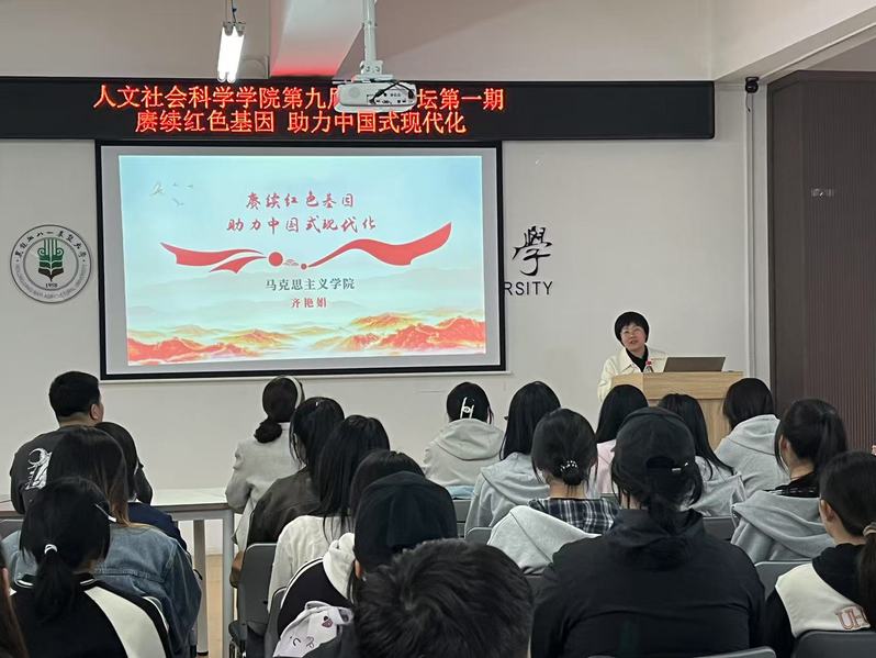 讲座中,齐艳娟用深入浅出的语言、生动形象的故事深情讲述红色“红色基因与中国式现代化的内在关联”;从历史逻辑、理论支撑、实践导向和全球视野三方面剖析“红色基因助力中国式现代化的四重维度”;通过回顾井冈山实地研学的经历和北大荒垦荒老兵采访手记,诠释中国共产党人精神谱系中历久弥新的井冈山精神与北大荒精神。最后师生共同探讨“从红色基因中汲取现代化建设思想伟力”的实践路径,现场积极互动、气氛热烈。